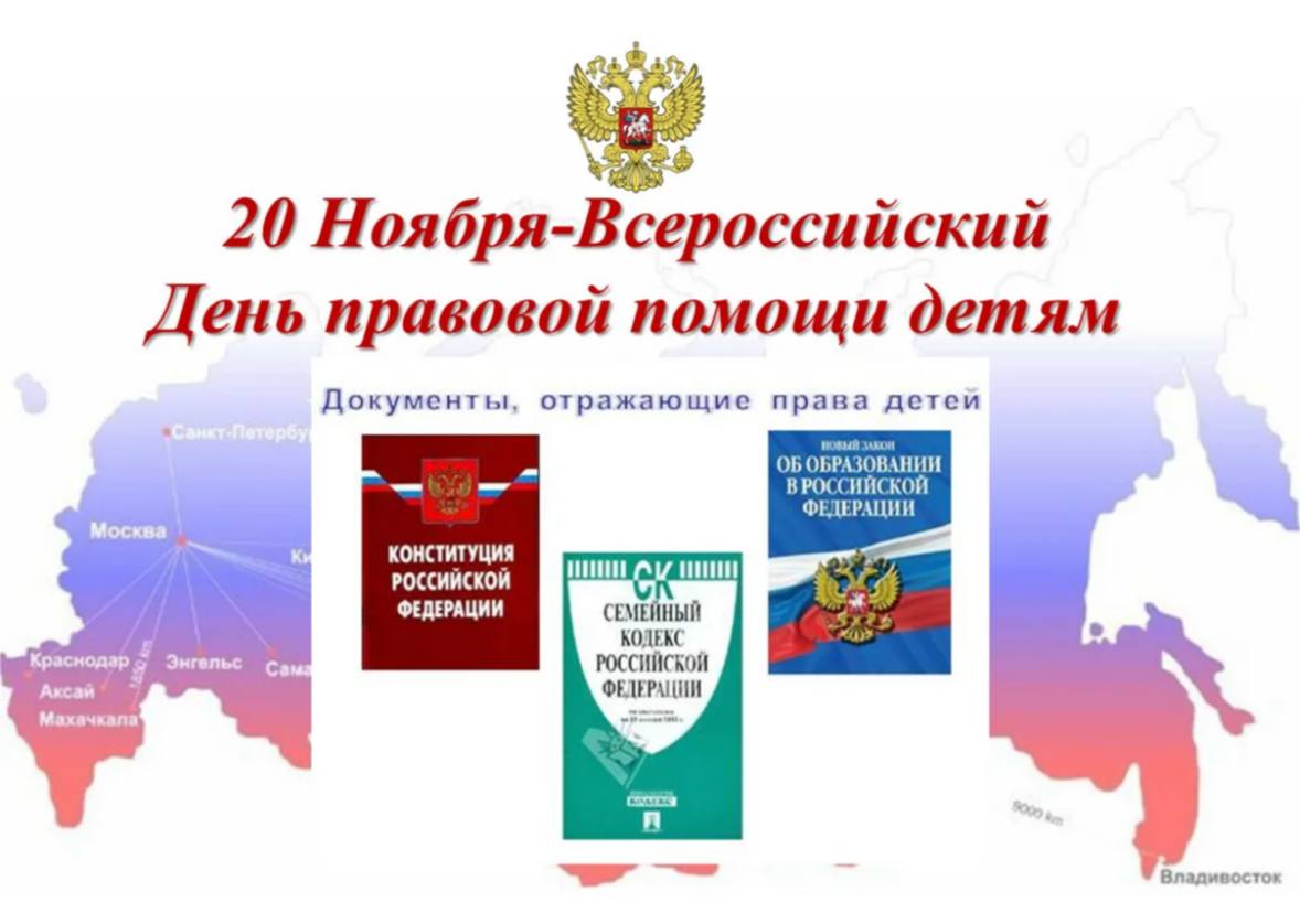 20 ноября во всех субъектах Российской Федерации ежегодно проводится Всероссийский день правовой помощи детям.